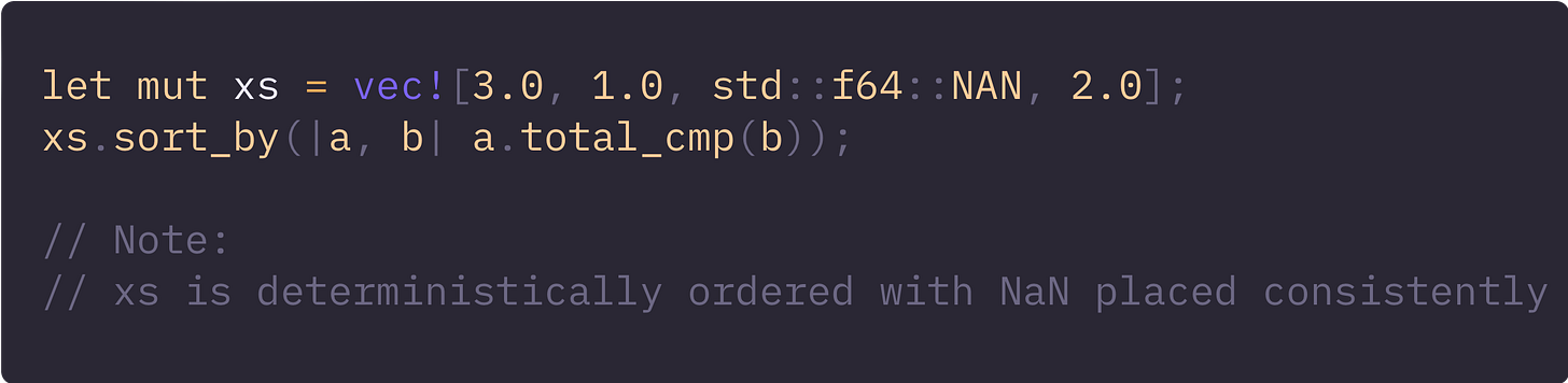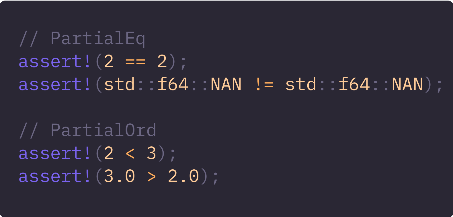 Rust distinguishes total and partial comparisons to encode mathematical laws in the type system without sacrificing practicality.