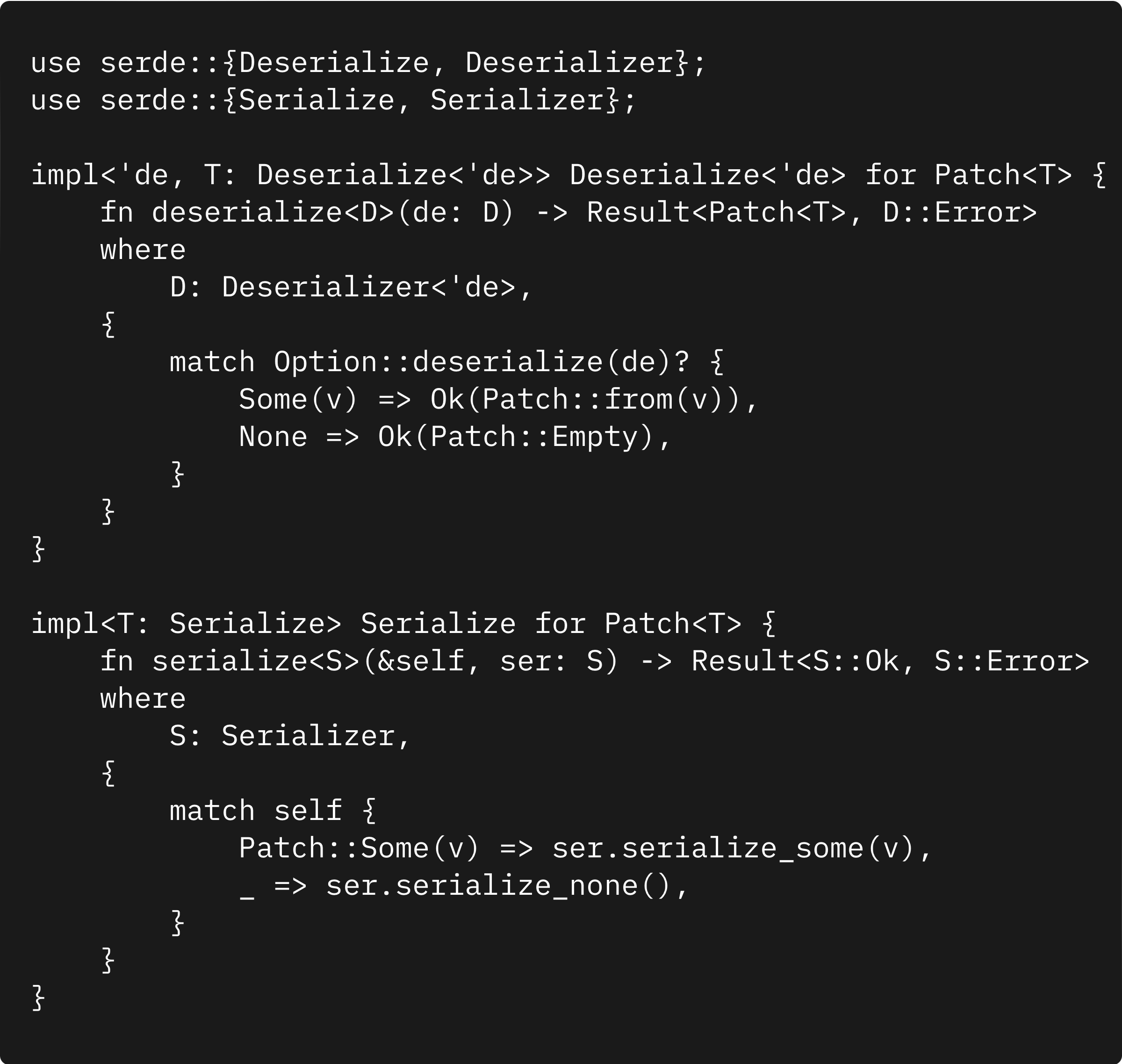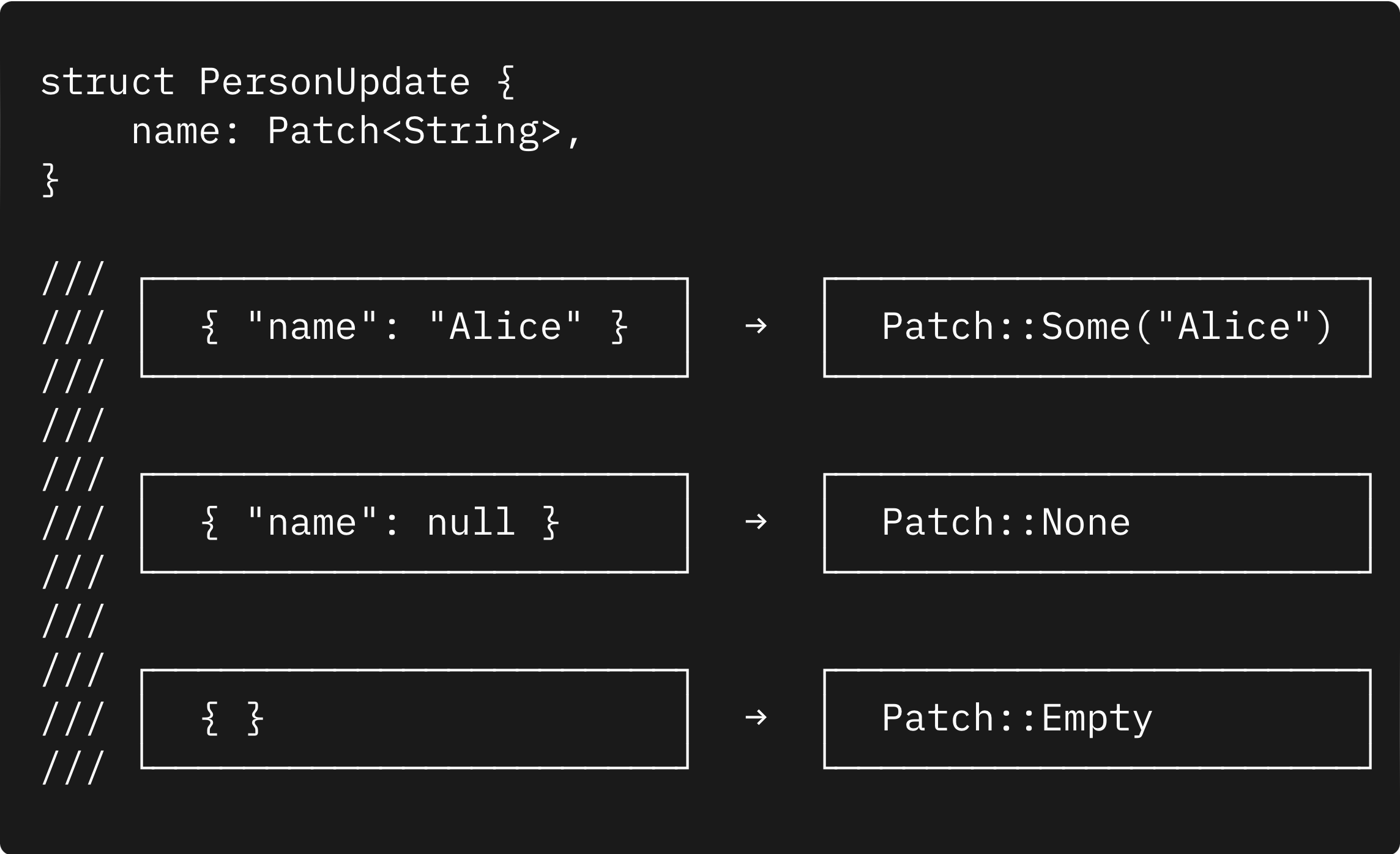 But where Patch really shines is at the API boundary — when deserializing user input: